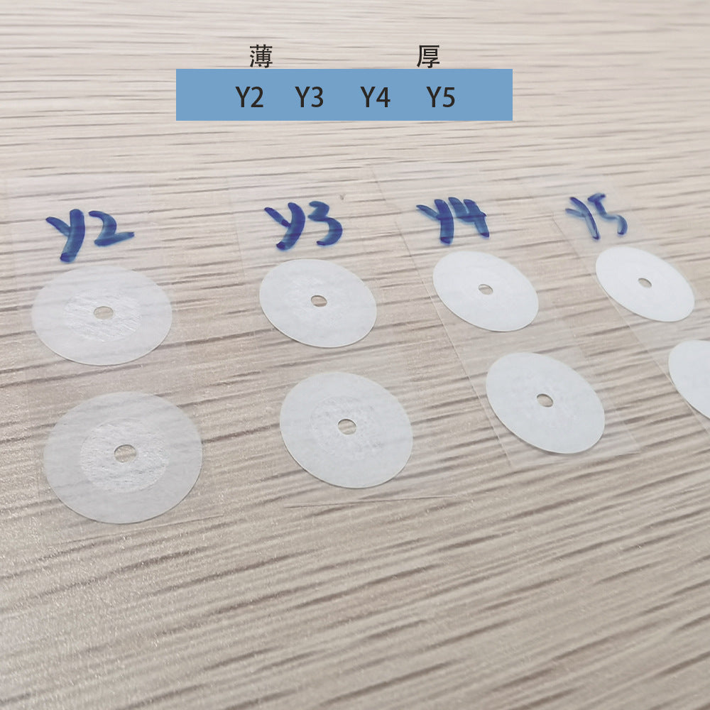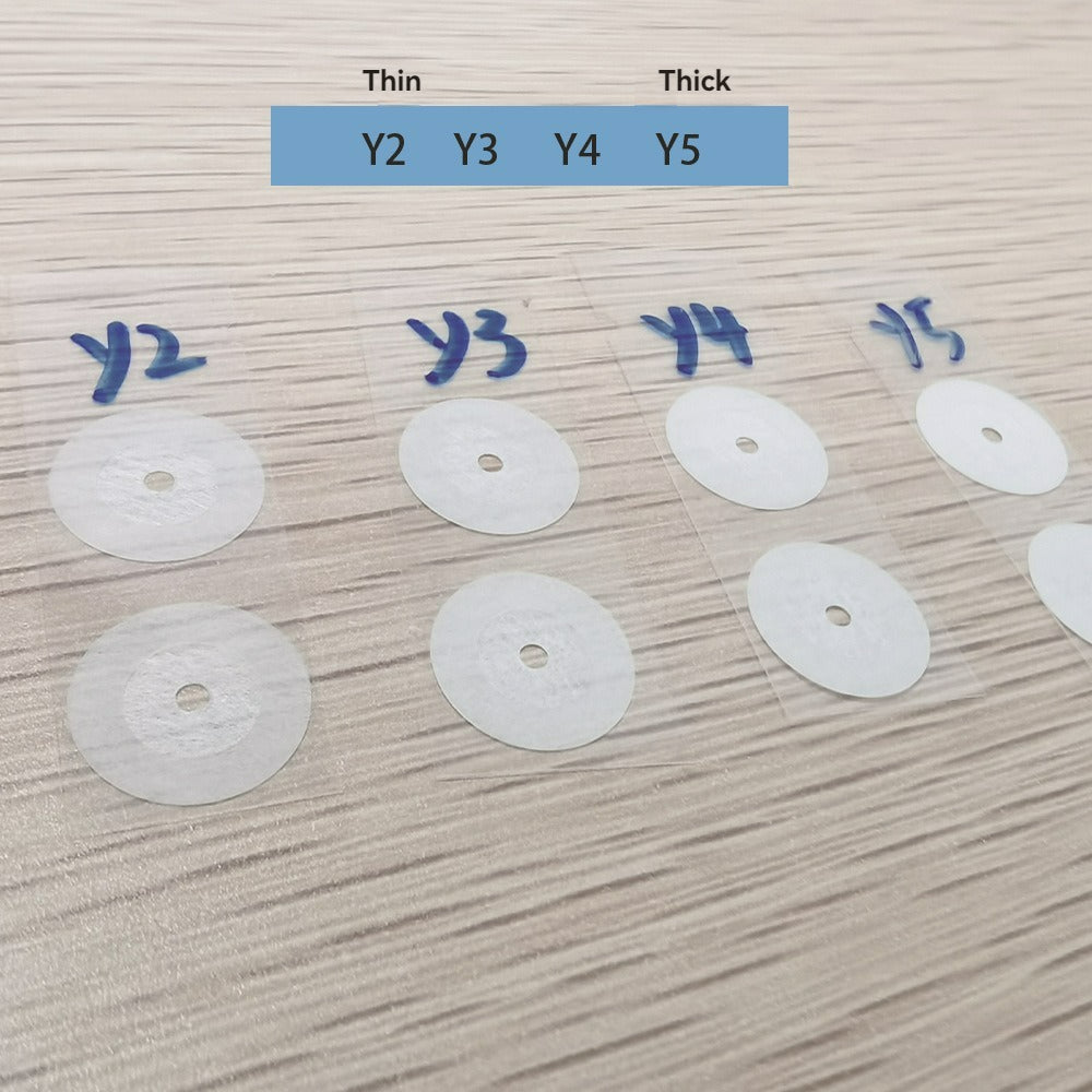 This series of acoustic tuning films is engineered for 40mm/50mm/70mm headphone drivers equipped with a central tuning port (original diameter: 4mm). By applying the film, the effective port diameter is reduced to 1.88mm, while four thickness options (Y2/Y3/Y4/Y5) enable precise adjustments across the entire frequency spectrum, from bass control to treble refinement.